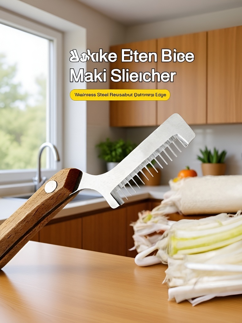 ● Elegant wooden handle adds a touch of sophistication to your kitchen, making this slicer both a practical tool and a stylish addition to your culinary collection.